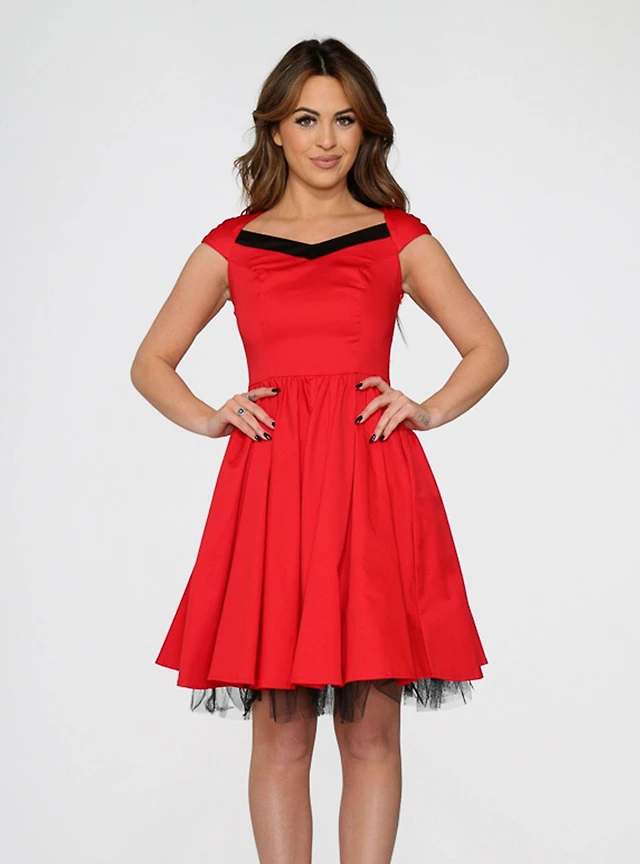 Red Velvet Lace-Up Back Fit & Flare Dress
