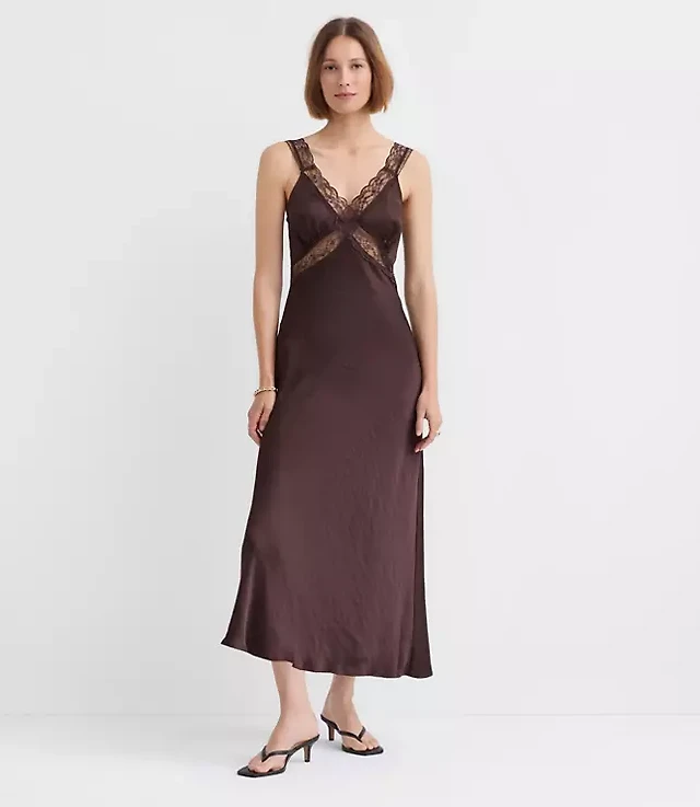 Petite Lace Trim Satin Bias Midi Dress