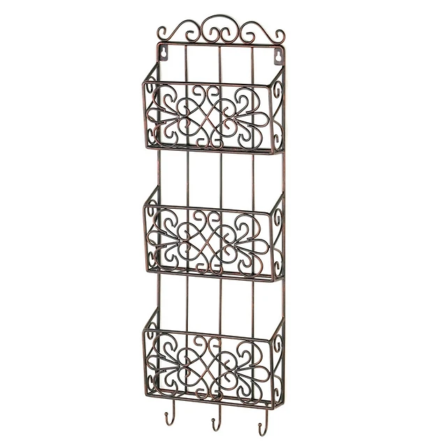 Mind Reader 3-Tier Wall-Mounted File Organizer, Wood and Metal Vertical Rack for Mail, Magazines, and Documents, Metal, Wood, White