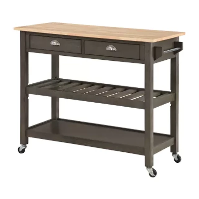French Country Butcher Block Counter Top Kitchen Cart with Wine Rack