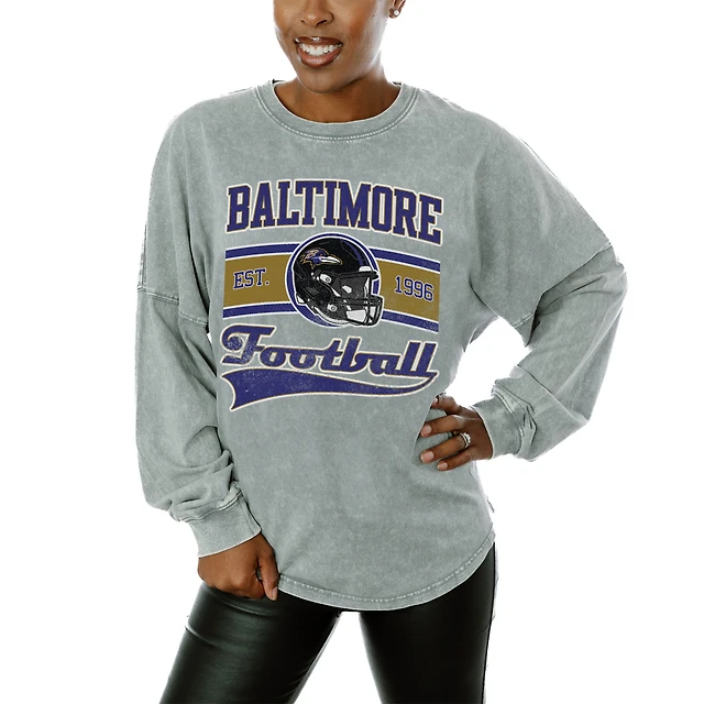 Women's Gameday Couture Gray Baltimore Ravens Oversized Final Score Snow Wash Long Sleeve T-Shirt