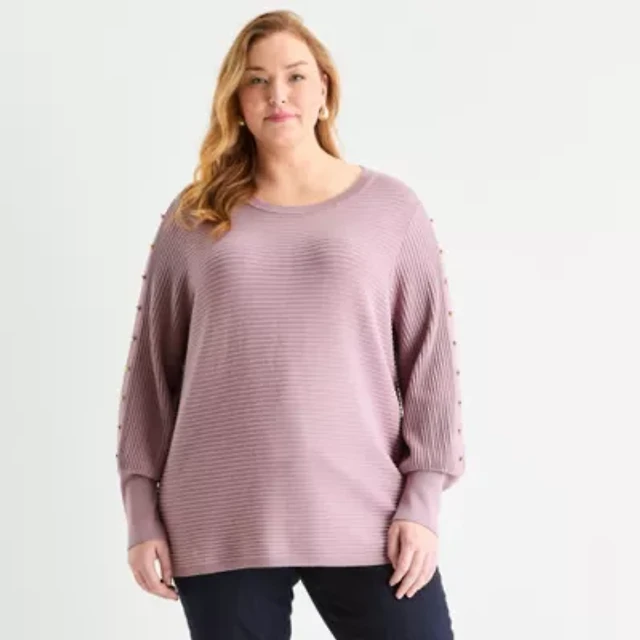 Liz Claiborne Womens Plus Crew Neck 3/4 Sleeve Blouse