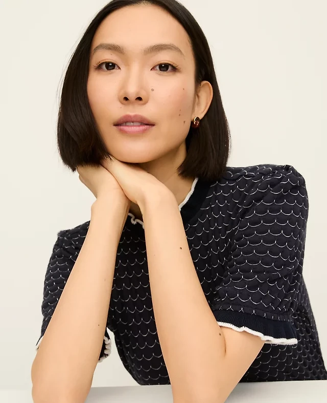 Melange Pointelle Flare Sleeve Sweater