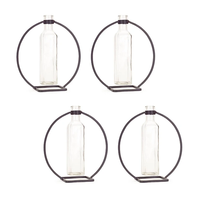 7.5" Bottle Vase in Iron Stand, 4ct.