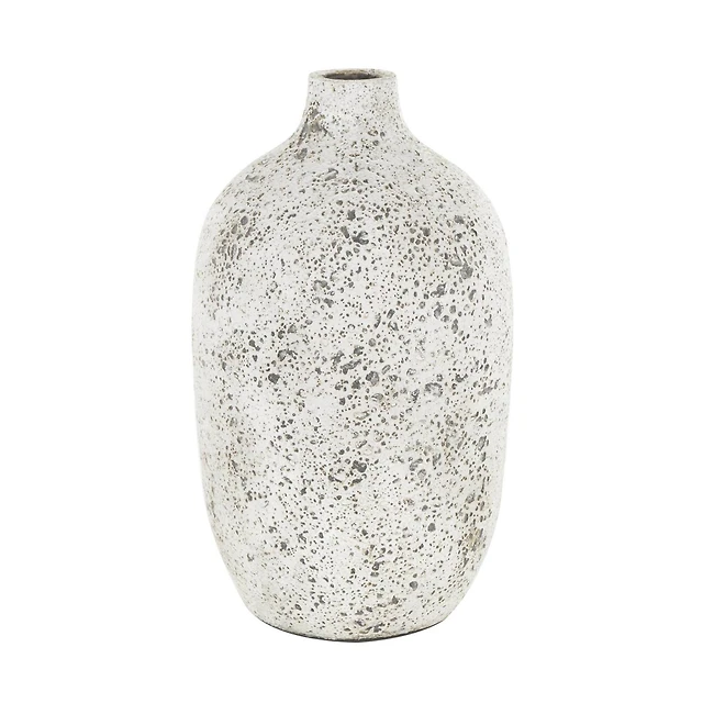 16" White Speckled Ceramic Ribbed Cutout Vase