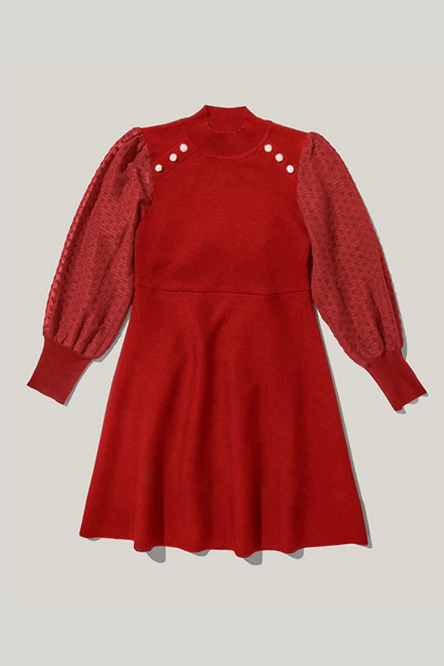 Plus Jacquard Bubble Sleeve Belted Mini Dress