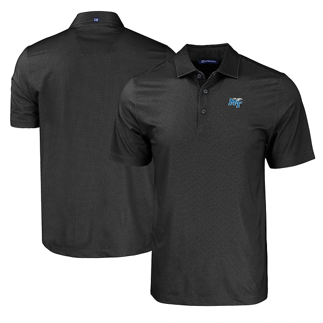 Men's Cutter & Buck Black MTSU Blue Raiders Pike Eco Tonal Geo Print Stretch Recycled Polo