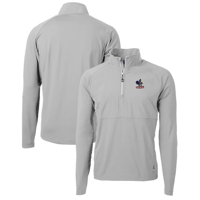 Men's Cutter & Buck Gray Los Angeles Chargers Adapt Eco Knit Hybrid Recycled Quarter-Zip Throwback Pullover Top