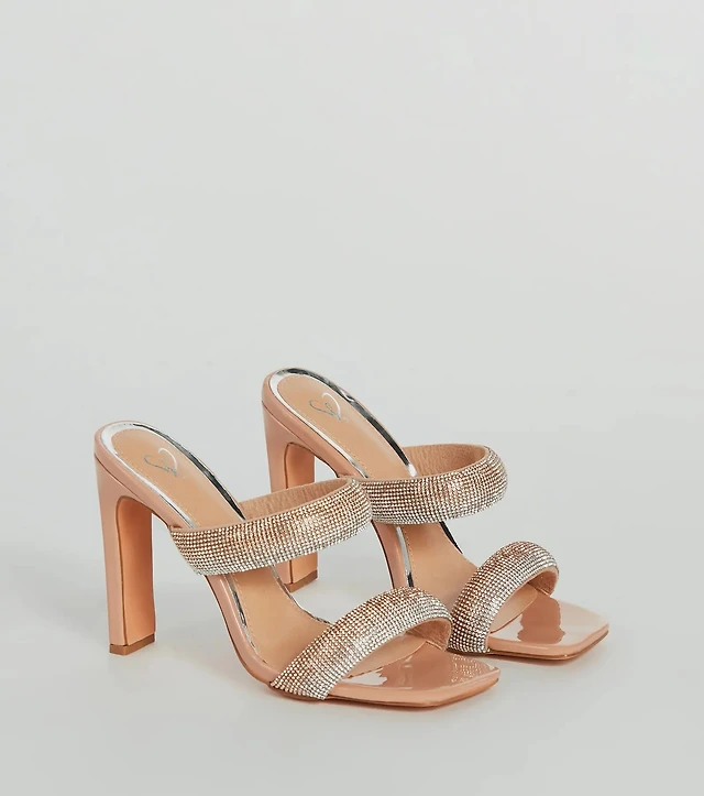 A-List Glam Rhinestone Strappy Block Heels