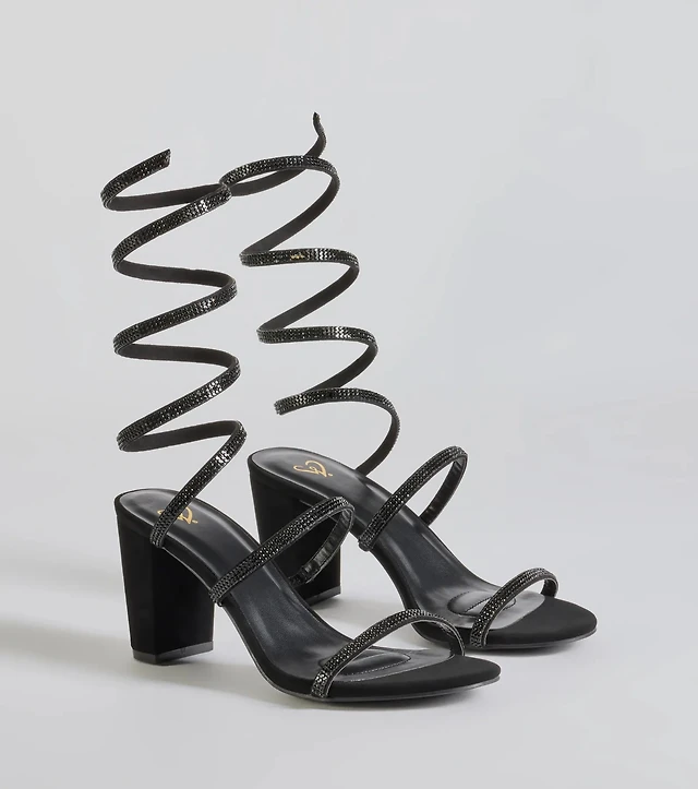 Wrapped Up Babe Rhinestone Lace-Up Stiletto Heels