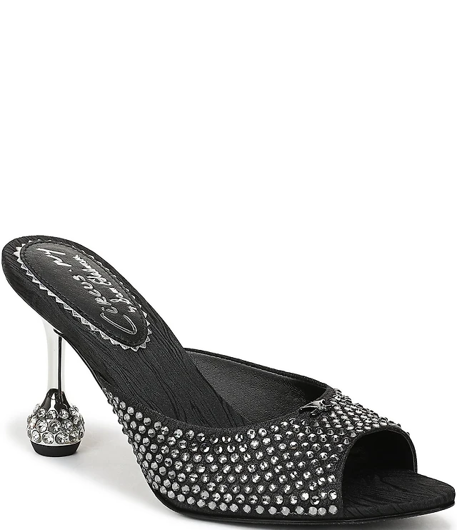 Circus NY by Sam Edelman Gisella Rhinestone Satin Sculpted Heel Dress Slide Sandals