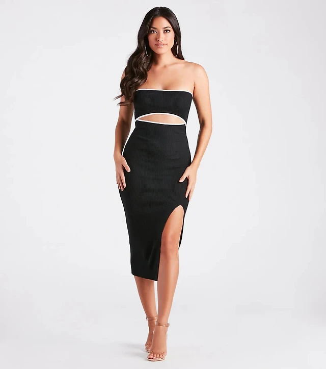Karen Kane Ribbed Knit Side Slit A-Line Midi Skirt