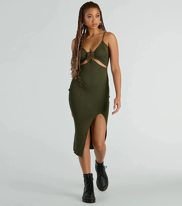 Sleek Essential Ribbed Knit High Slit Midi Dress