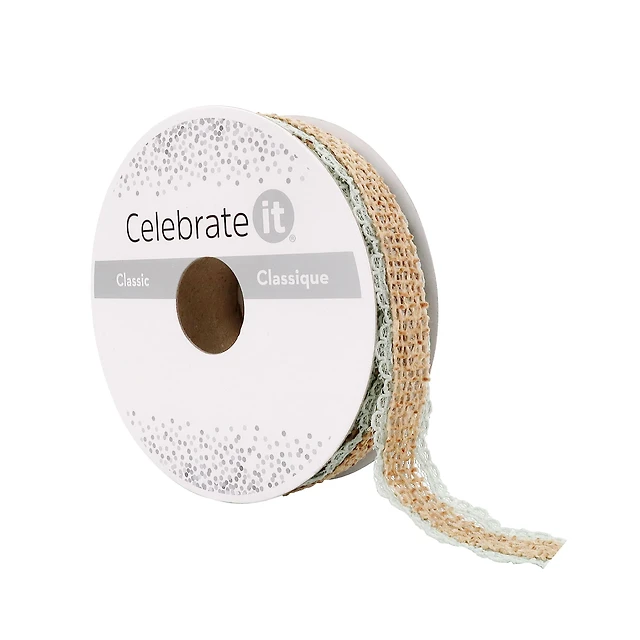 JAM Paper 1.5" x 20yd. Faux Linen Wired Flower Row Ribbon
