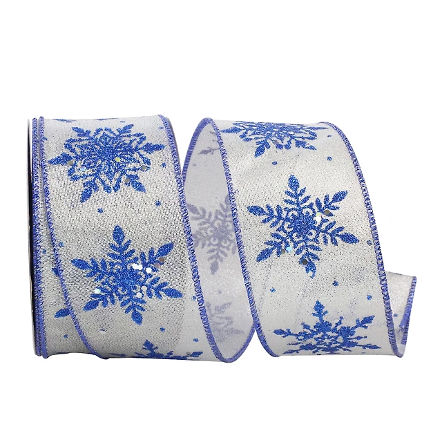 Reliant 2.5" x 50yd. Red Glitter Snowflakes Satin Value Wired Ribbon