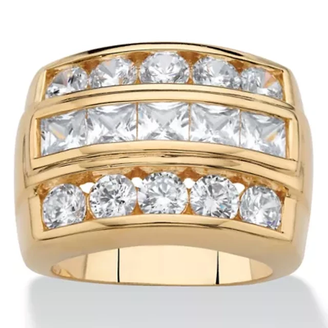 4.35 Cttw Men's Square-Cut 18k Gold-Plated Cubic Zirconia Channel-Set Step Ring