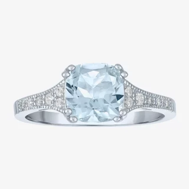 Previously Owned - Cushion-Cut Aquamarine and Diamond Engagement Ring in 10K White Gold