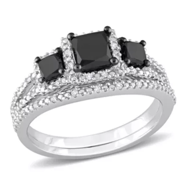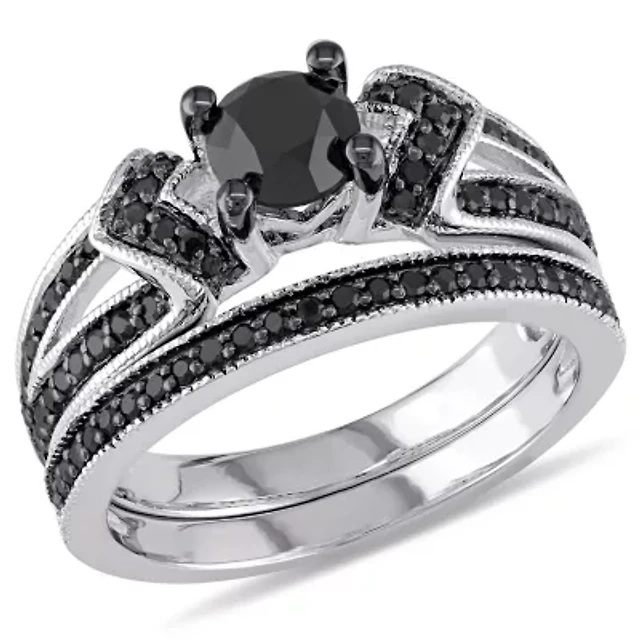 1.25 ct. t.w. Black and White Diamond Split Shank Bridal Ring Set Sterling Silver with Rhodium Plated