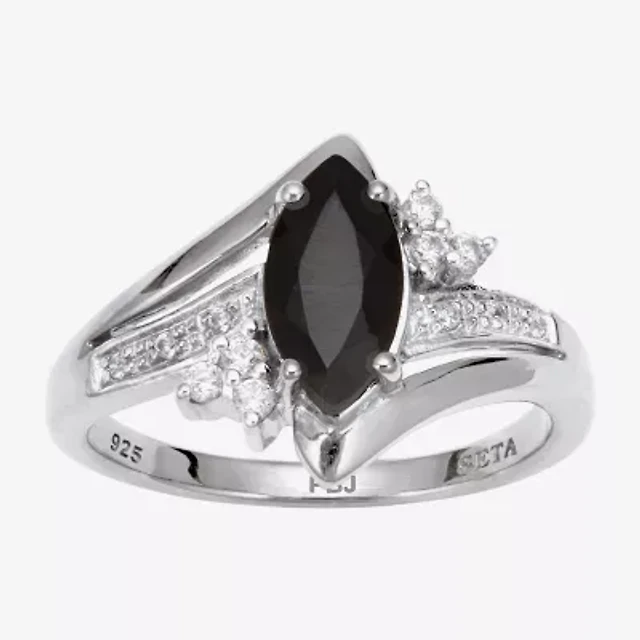 Womens Genuine Black Onyx Sterling Silver Halo Cocktail Ring