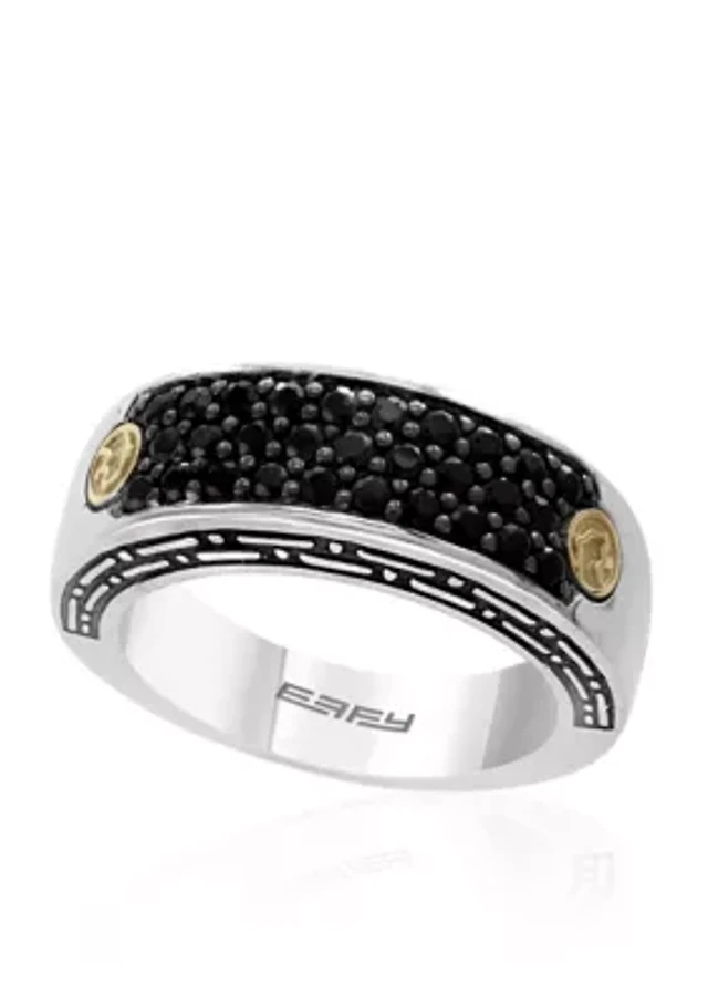 Sterling Silver/Gold Over Silver Black Spinel and Zircon Men's Ring