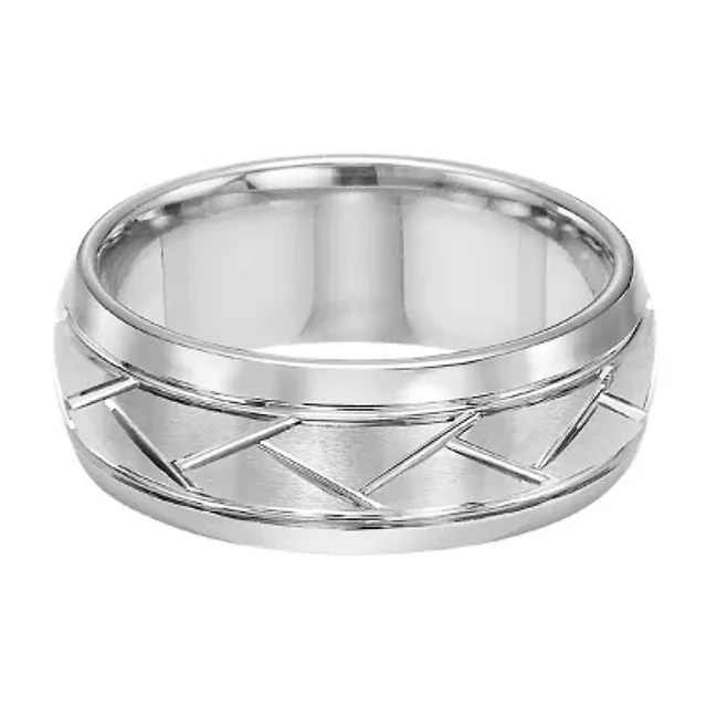 Mens 10K White Gold 8mm Band