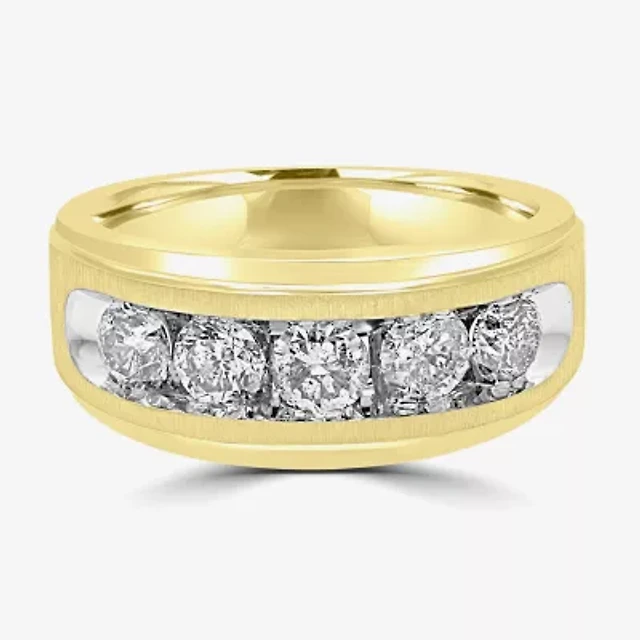 (F / Vs2) Mens 9.5MM 1 CT. T.W. Lab Grown White Diamond 14K Gold 5-Stone Wedding Band