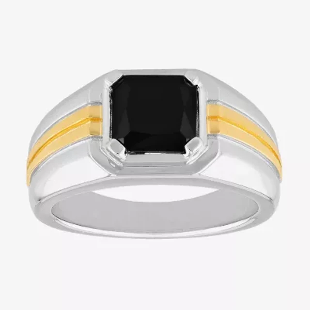 Men's Multi-Diamond Center Square Ring 1 ct tw Round & Baguette-cut 10K Yellow Gold