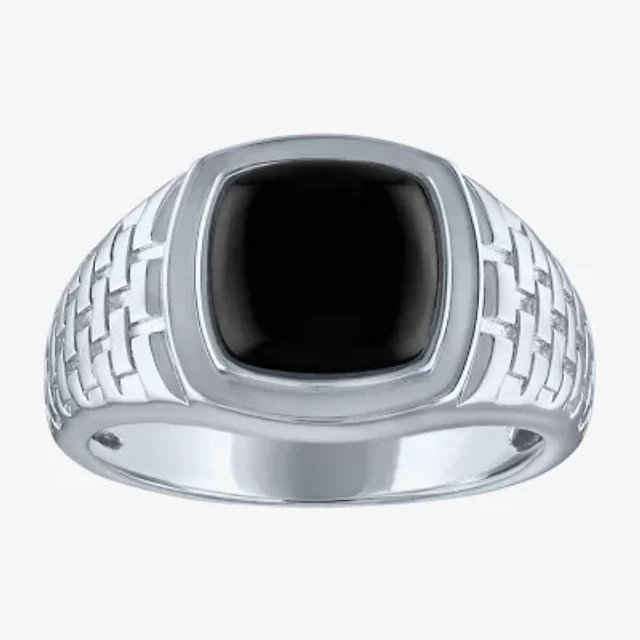 Men's White Lab-Created Sapphire Ring Black Ion-Plated Stainless Steel