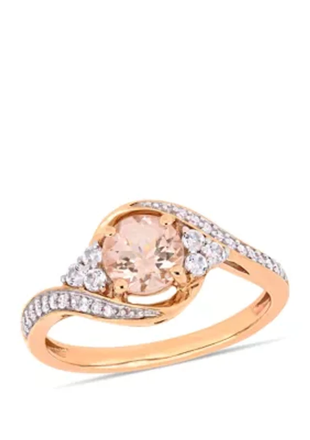 1 1/10 ct. t.w. Morganite, White Topaz and Diamond Crossover Ring 10k Rose Gold