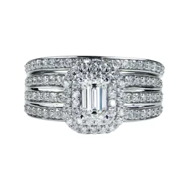 Signature By Modern Bride Womens 1 1/2 CT. T.W. Natural White Diamond 14K Gold Halo Engagement Ring
