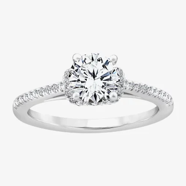 (H-I / Si1-Si2) Womens 1 1/2 CT. T.W. Lab Grown White Diamond 10K Gold Side Stone Halo Engagement Ring