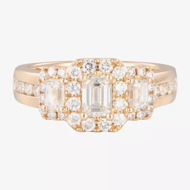 Love Lives Forever (F / Si2) Womens 1 1/2 CT. T.W. Lab Grown White Diamond 10K Gold Side Stone 3-Stone Engagement Ring