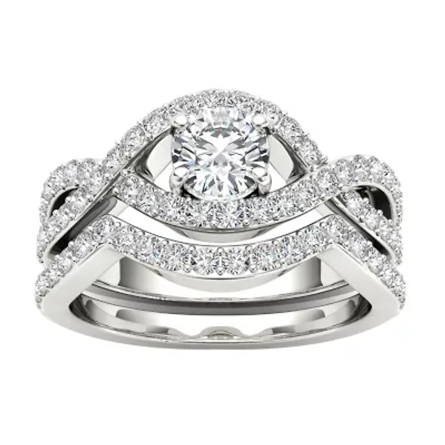 1-1/2 CT. T.w. Diamond Frame Bridal Set in 14K White Gold