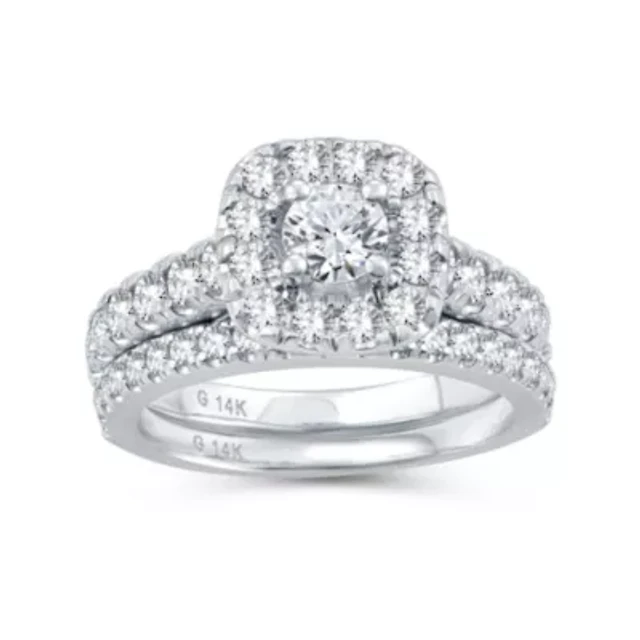 2.20 TCW CZ Two-Piece Halo Bridal Ring Set Platinum-plated Sterling Silver