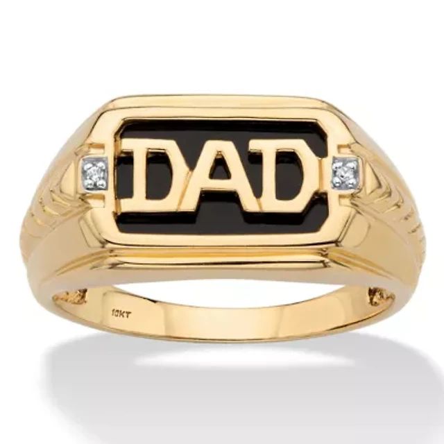 Men's Solid 10k Yellow Gold Emerald-Cut Genuine Onyx and Diamond Accent DAD Ring