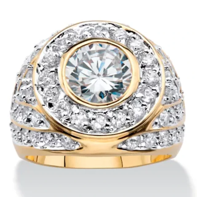 Gold-Plated Cushion Cut Cubic Zirconia Pavé Ring