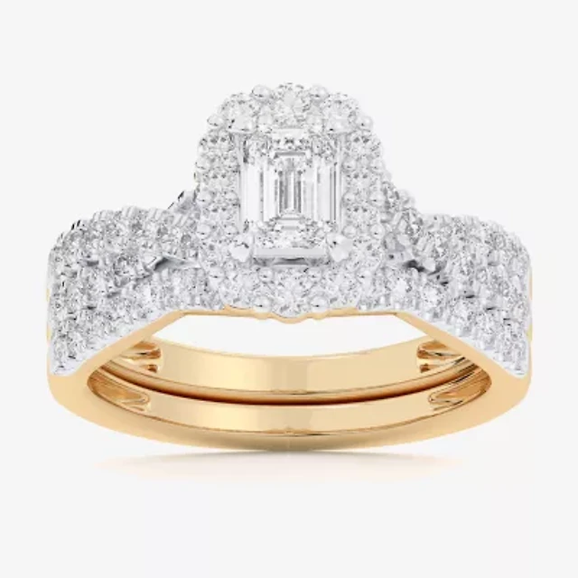 Signature By Modern Bride (G-H / Si1-Si2) Womens 1 1/3 CT. T.W. Lab Grown White Diamond 10K Gold Round Side Stone Halo Bridal Set