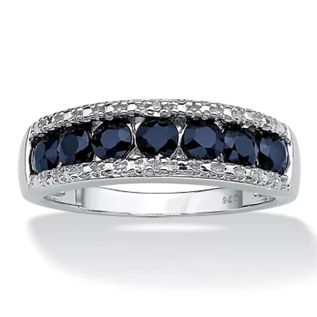 Womens Diamond Accent Genuine Blue Sapphire Platinum Over Silver Cocktail Ring