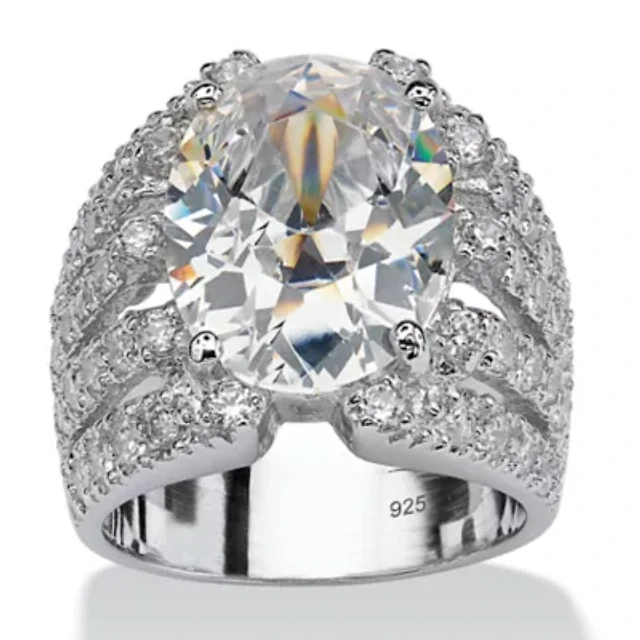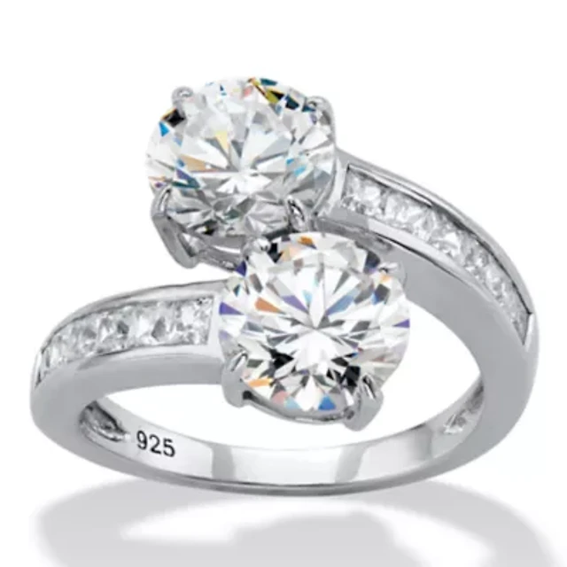 3.02 Cttw. Cubic Zirconia Platinum-plated Silver 2-Piece Bridal Ring Set