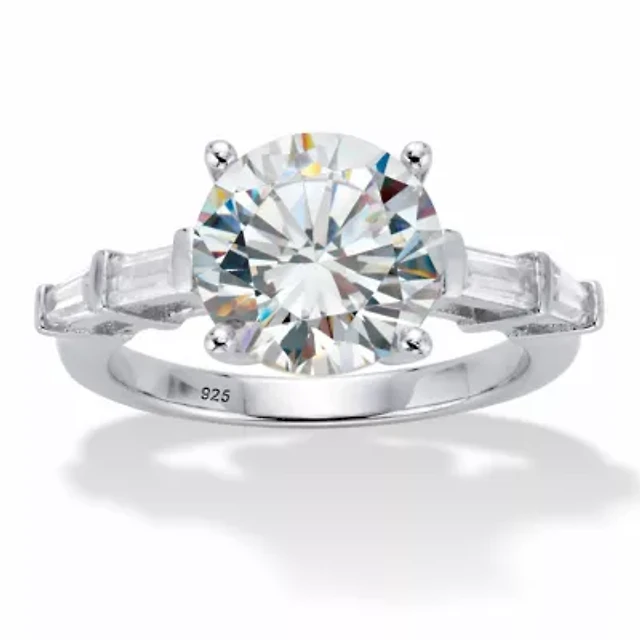1.03 Cttw. Round Cubic Zirconia Platinum-plated Silver Art Deco-Style Ring