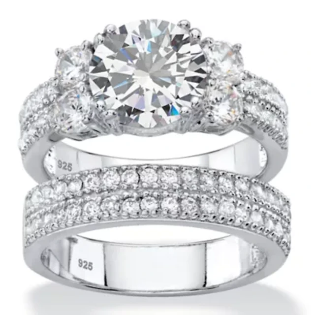 1.79 Cttw. 2-Piece Round .925 Sterling Silver Cubic Zirconia Wedding Ring Set