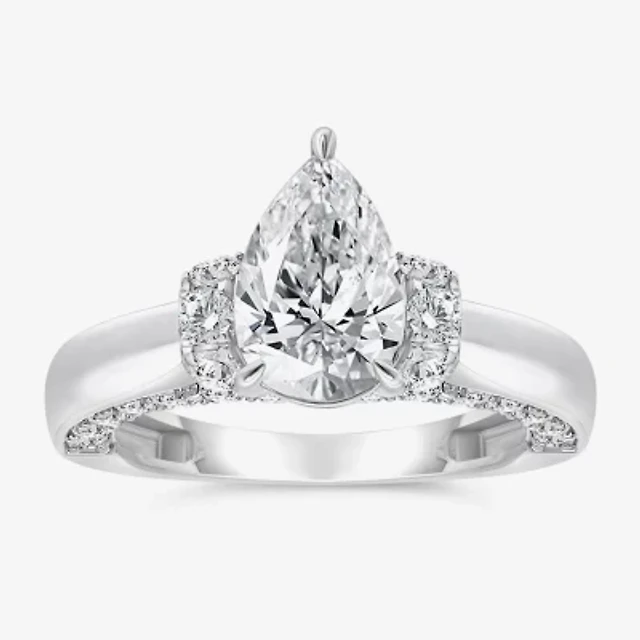 (I / I1) Womens 3 CT. T.W. Lab Grown White Diamond 10K Gold or 14K Pear Solitaire Engagement Ring