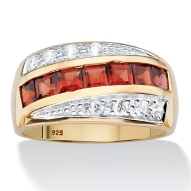 Men's 1.67 TCW Genuine Garnet and CZ 14k Gold-plated Silver Channel-Set Ring
