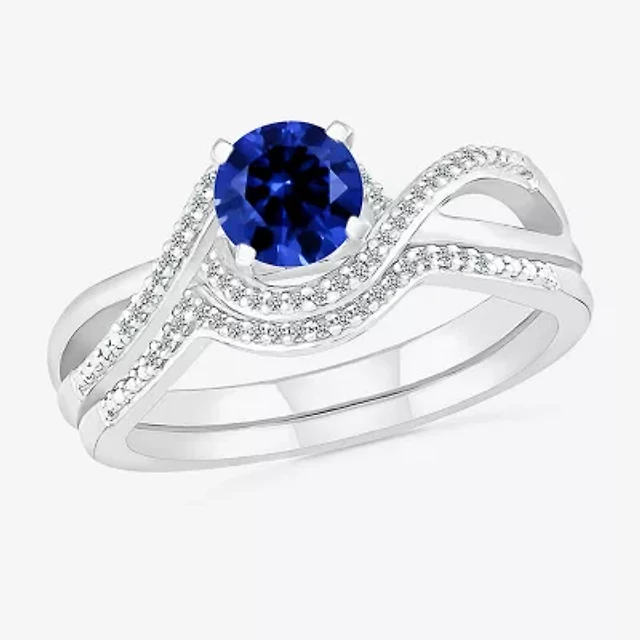 Modern Bride Gemstone Womens Lab Created Blue Sapphire Sterling Silver Round Bridal Set