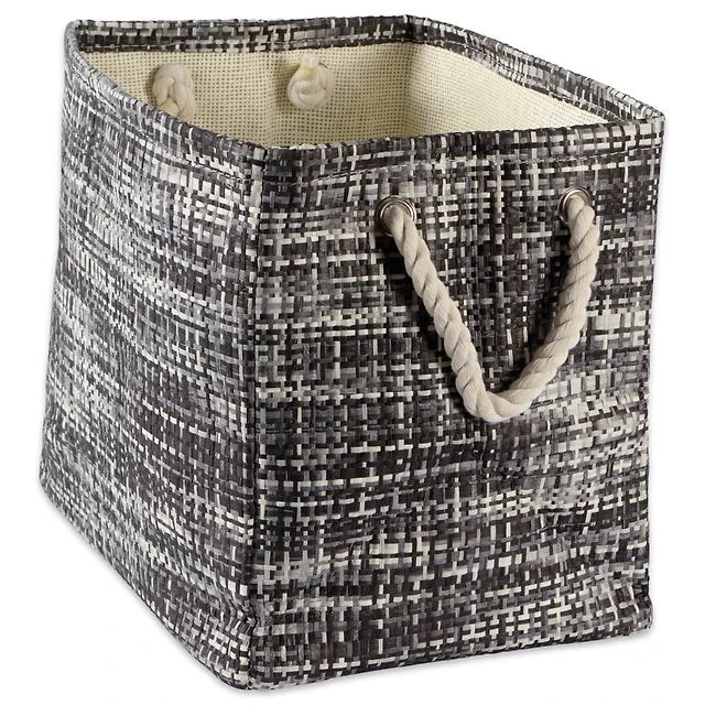 DII® Large Black & Stone Striped Weave Round Paper Storage Basket