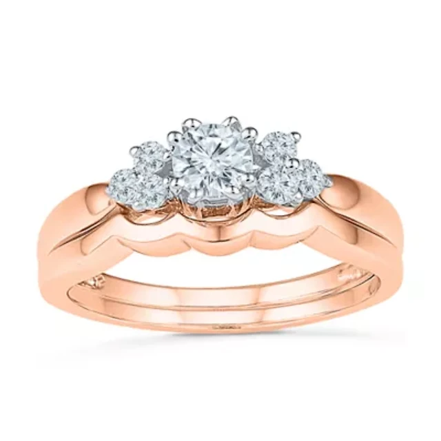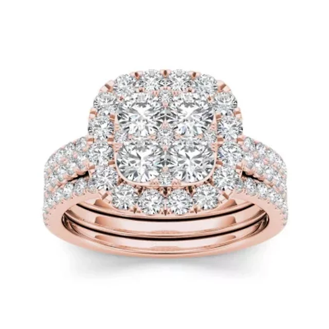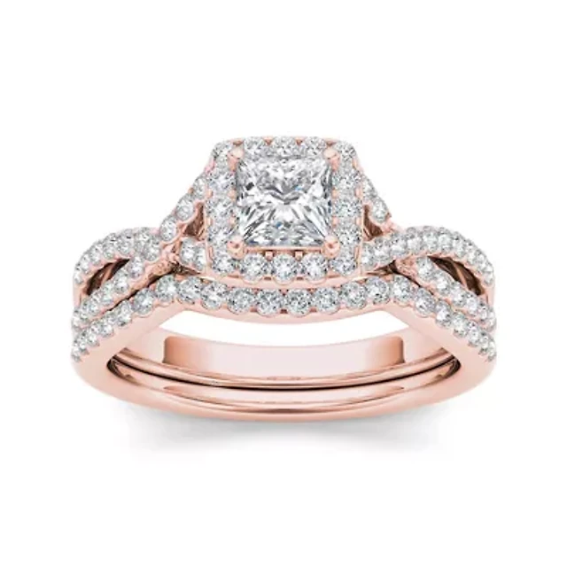 Womens 1 CT. T.W. Natural White Diamond 10K Gold Rose Cushion Bridal Set