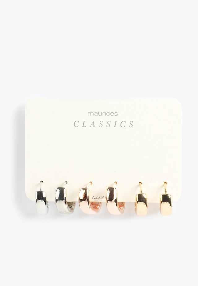 3 Pack Mixed Metal Huggie Hoop Earring Set