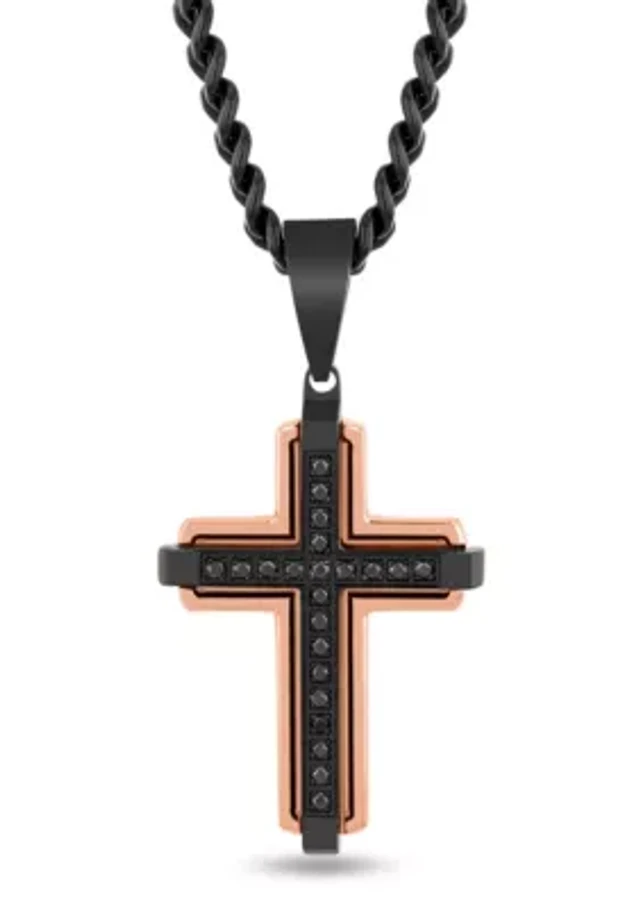 1/5CTW Black Diamond Men's Stainless Steel Two-tone Black and Rose Finish Cross Pendant