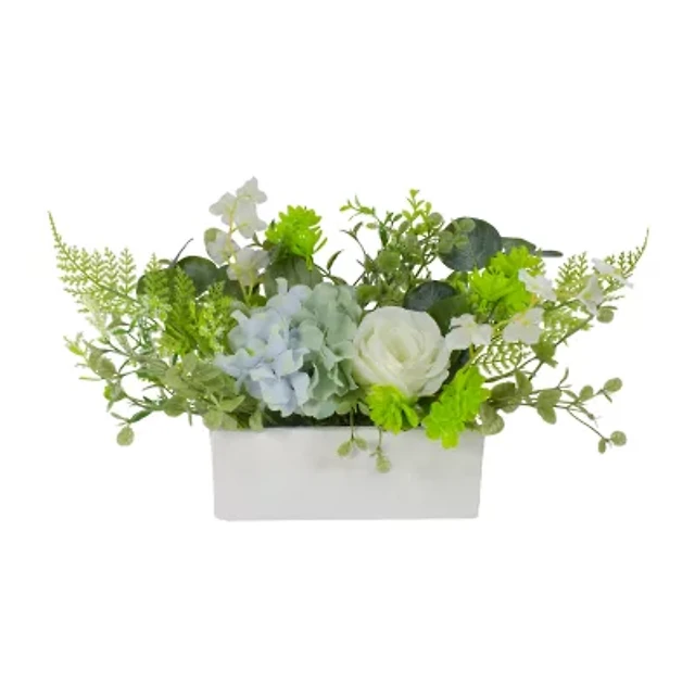 Northlight 14in Blue And White Hydrangea And Rose Floral Arrangement