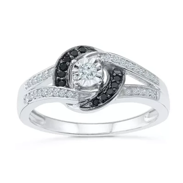 Promise My Love Womens 1/4 CT. T.W. Natural White Diamond 10K Gold Round Side Stone Ring